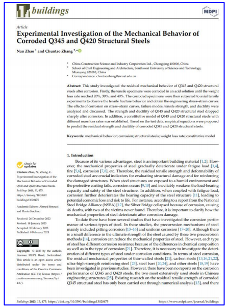 在国际期刊《Buildings》发表 SCI 检索论文 1 篇