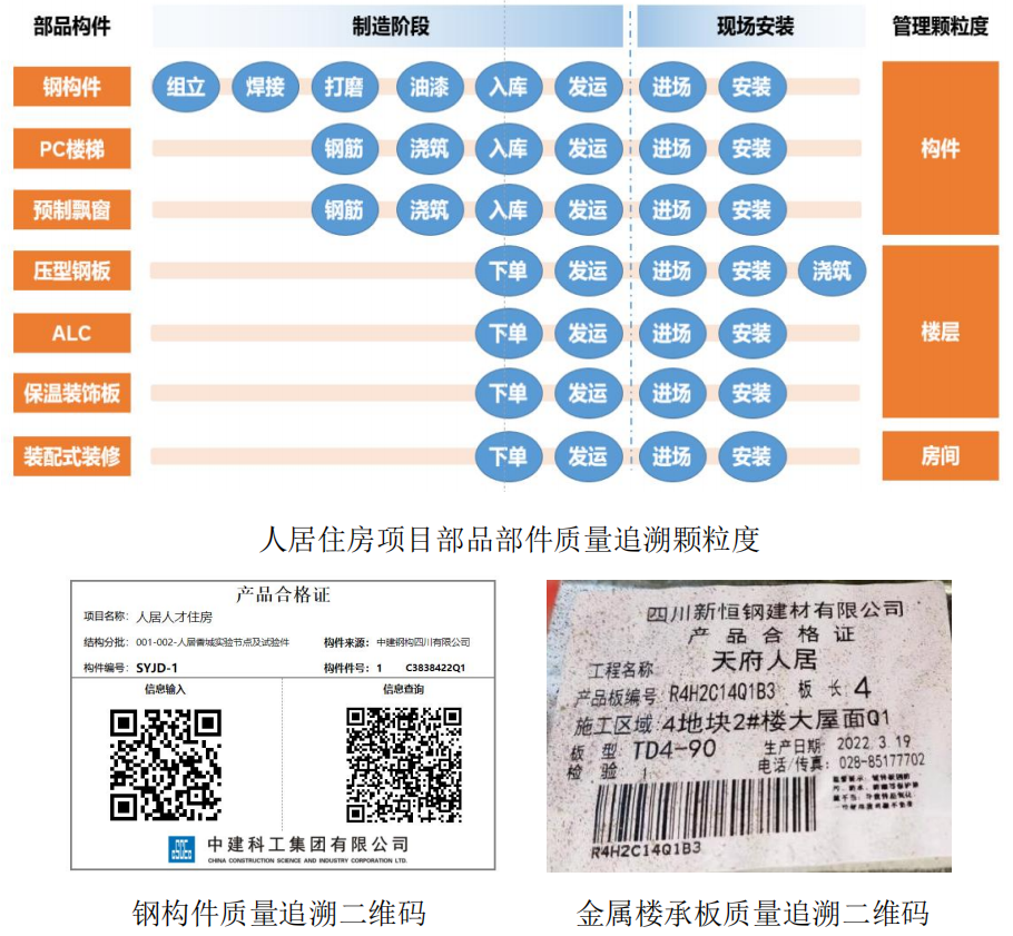 按照构件、房间、楼层不同颗粒度,在国内首次实现对装配式住宅七大类部品部件建造过程的质量追溯。