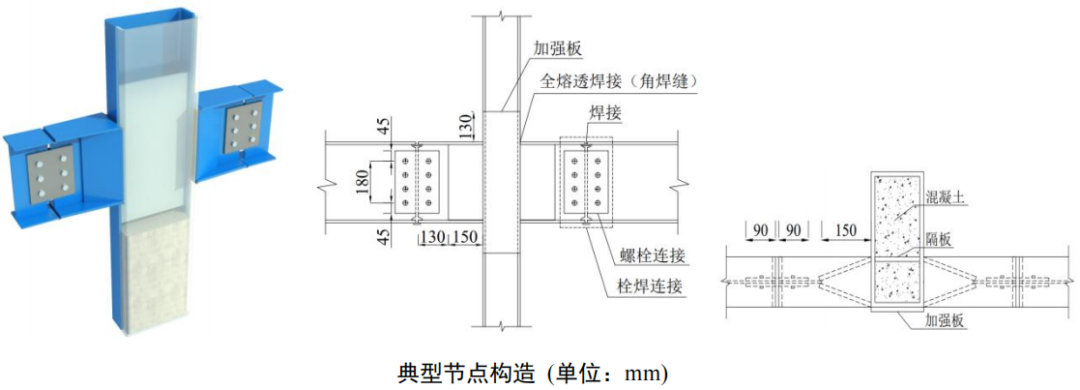 项目钢结构体系具有优越的抗震性能。同时,该节点实现了室内无凸梁凸柱,可节约空间、方便装修。