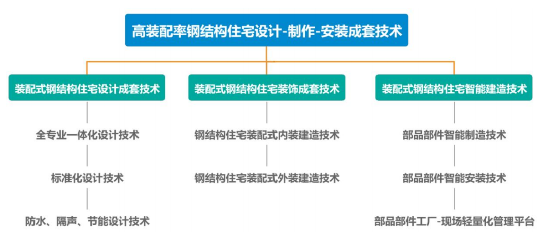 项目 EPC 团队围绕部品部件装配技术、装饰装修、智能建造三大主题,开展了系列技术攻关,立项省部级和中建科工重大科研课题5项, 形成了一套高装配率钢结构住宅设计-制造-装配-运维一体化解决方案。