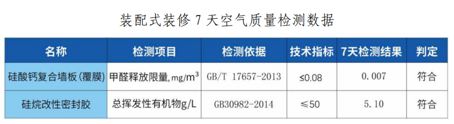 采用挥发有机物含量低的硅烷改性密封胶。装修完 7 天进行有害物质检测,甲醛和挥发性有机物检测数据均远低于规范限值,可实现即装即住。